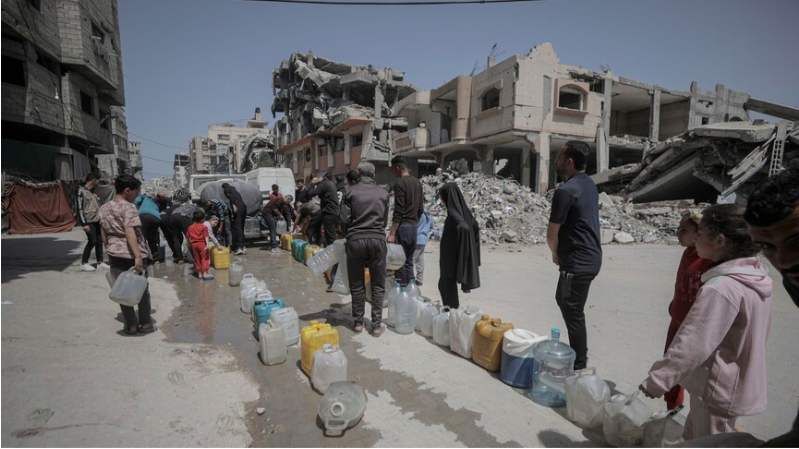 Gazze'de yerinden edilen ve çadırlarda yaşamak zorunda kalan Filistinliler, her gün uzak mesafelerden su taşımak zorunda kaldıklarını ve artık evlerde yaşamak istediklerini söylüyor.